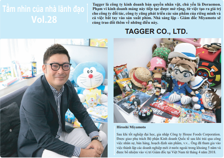 Tagger là công ty kinh doanh bản quyền nhân vật, chủ yếu là Doraemon. Phạm vi kinh doanh mảng này tiếp tục được mở rộng, từ việc tạo ra giá trị cho công ty đối tác, công ty cũng phát triển các sản phẩm của riêng mình và cả việc bắt tay vào sản xuất phim. Nhà sáng lập – Giám đốc Miyamoto sẽ cùng trao đổi thêm về những điều này.