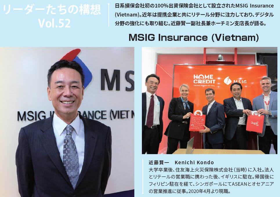 日系損保会社初の100%出資保険会社として設立されたMSIG Insurance (Vietnam)。近年は提携企業と共にリテール分野に注力しており、デジタル分野の強化にも取り組む。近藤賢一副社長兼ホーチミン支店長が語る。