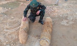 ゲアン省タンキー県ギアホップ村に住む人が家を建てるためにブルドーザーを使って整地をおこなっていたところ、約20m間隔で3発の不発弾が発見された。 3月20日にゲアン省軍司令部の工兵部隊、県の軍隊および、地元の民兵が協力し … 続きを読む ベトナムニュース【事件】ゲアン省の民家付近で不発弾を発見
