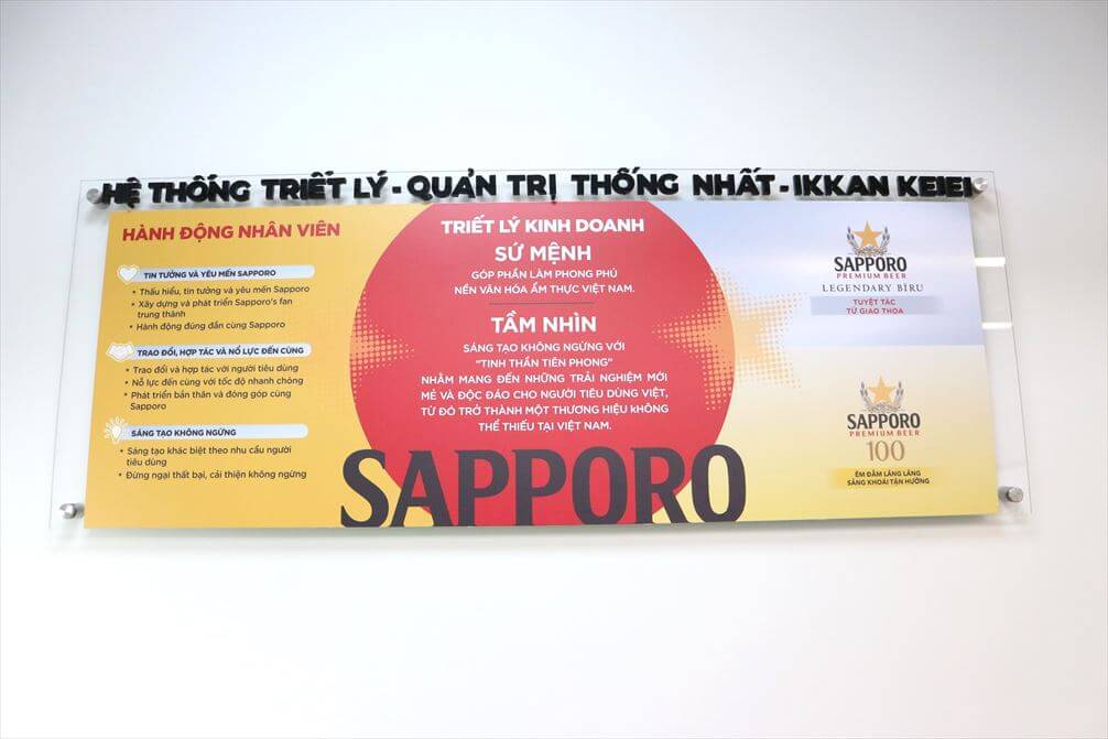 Trong một năm chúng tôi sẽ có vài lần đối thoại với toàn thể nhân viên, chẳng hạn như trong các buổi công bố kết quả hoạt động kinh doanh, chúng tôi truyền đạt sứ mệnh của mình là “đóng góp vào nền văn hóa ẩm thực phong phú của Việt Nam.” Bán bia là một phương tiện, không phải là mục đích. Chúng tôi muốn khách hàng hiểu được hương vị ngon của bia tươi, tăng cường sự phù hợp giữa bia và bữa ăn của khách hàng, làm cho văn hóa ẩm thực phong phú trở nên phong phú hơn. Bởi vì sản phẩm bia Sapporo Premium Beer mang lại giá trị chức năng là “Sự cân bằng tốt nhất” .