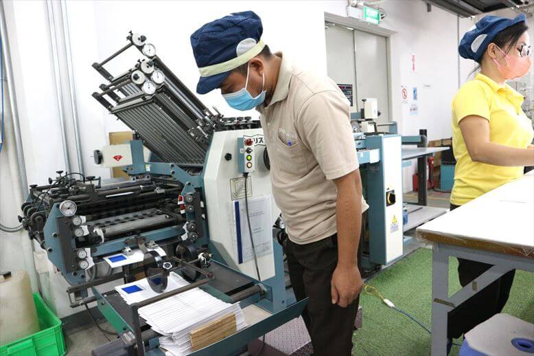 Yamamoto:Một trong những đặc trưng của công ty là quy trình sản xuất khép kín, từ thiết kế, xử lý dữ liệu, in ấn, gia công đến giao hàng, tất cả đều được thực hiện bằng thiết bị và nhân lực nội bộ mà không phụ thuộc vào các nhà thầu bên ngoài. Trong ngành in ấn tại Nhật Bản, phân công lao động rất phổ biến, nhưng tại Việt Nam, cơ chế này vẫn chưa được thiết lập, và tôi tin rằng việc tự thực hiện sẽ giúp chúng tôi quản lý chất lượng và giao hàng tốt hơn.
