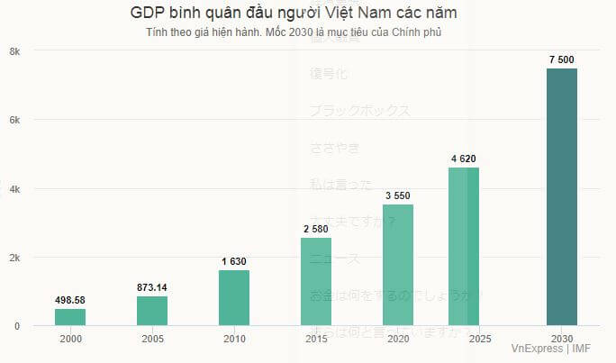 ベトナム政府は、2030年までに一人あたりのGDPを約7500USD(現在のレートで1億9000万VND)まで引き上げることを目標としている。